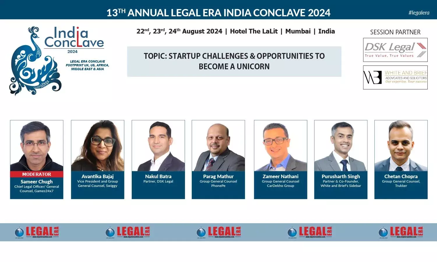 #13thAnnualLegalEra #LegalEraConclave2024 #StartupChallenges #StartupOpportunities #UnicornJourney #LegalHurdles #InHouseLegal #StartupEcosystem #AvantikaBajaj #Swiggy #NakulBatra #DSKLegal #ParagMathur #PhonePe #ZameerNathani #CarDekhoGroup #PurusharthSingh #WhiteAndBrief #ChetanChopra #Trukker #SameerChugh #Games24x7 #LegalInsights #StartupSuccess #CorporateGrowth #LegalStrategy #Entrepreneurship #GrowthAvenues #BusinessScaling #LegalLeadership #UnicornStatus #StartupLegal #CorporateRiskManagement