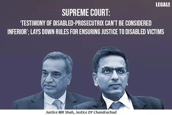 The SC bench comprising of Justices DY Chandrachud and MR Shah while holding that testimony of differently-abled prosecutrix cannot be considered inferior also issued a slew of guidelines addressing the issue of the discrimination against disabled persons and to make the judicial system more disabled-friendly.