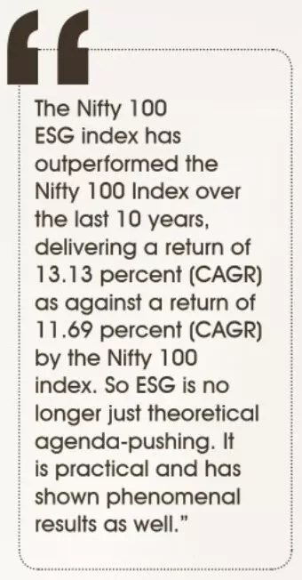 Now let's bring it closer to home. Data confirms that The Nifty 100 ESG index has outperformed the Nifty 100 Index over the last 10 years, delivering a return of 13.13 percent (CAGR) as against a return of 11.69 percent (CAGR) by the Nifty 100 index. So, this is no longer just theoretical agenda-pushing. It is practical and has shown phenomenal results.