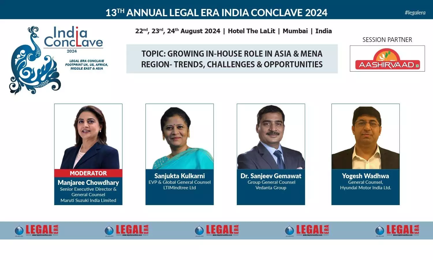#13thAnnualLegalEra #LegalEraConclave2024 #InHouseLegalRoles #AsiaMENARegion #InHouseCounsel #CorporateGovernance #LegalTrends #RiskManagement #ComplianceChallenges #SanjuktaKulkarni #LTIMindtree #DrSanjeevGemawat #VedantaGroup #YogeshWadhwa #HyundaiMotorIndia #ManjareeChowdhary #MarutiSuzuki #Aashirvaad #LegalProfessionals #CorporateFramework #LegalGrowth #LegalLeadership #InHouseLawyers #CorporateCounsel #LegalInsights #MENARegion #AsiaLegalTrends #InHouseLegalExcellence #CorporateCompliance #LegalOpportunities