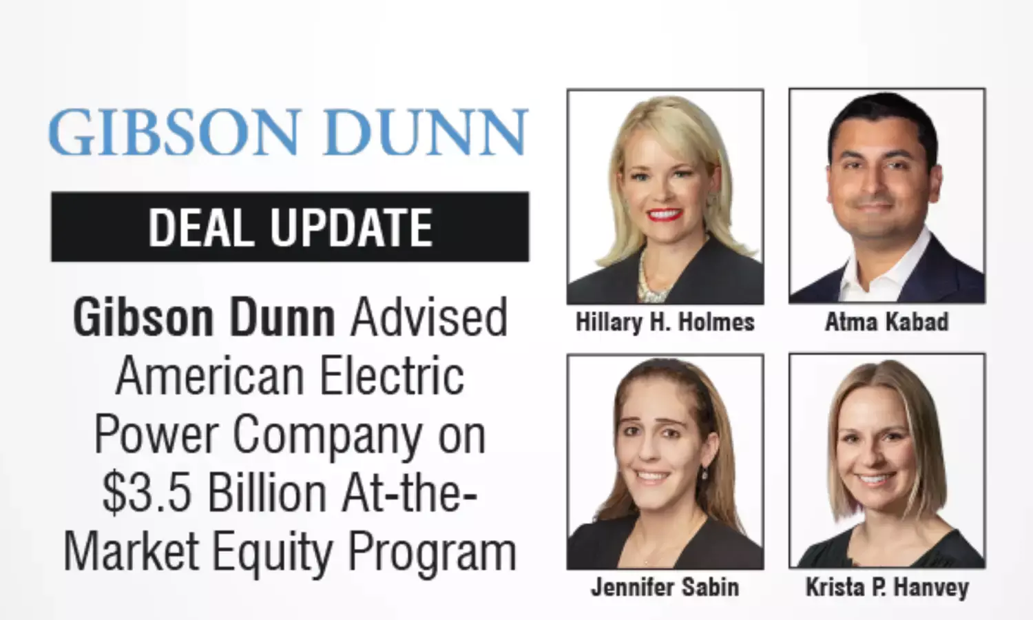 Gibson Dunn advised American Electric Power Company, Inc. on a $3.5 billion at-the-market equity program