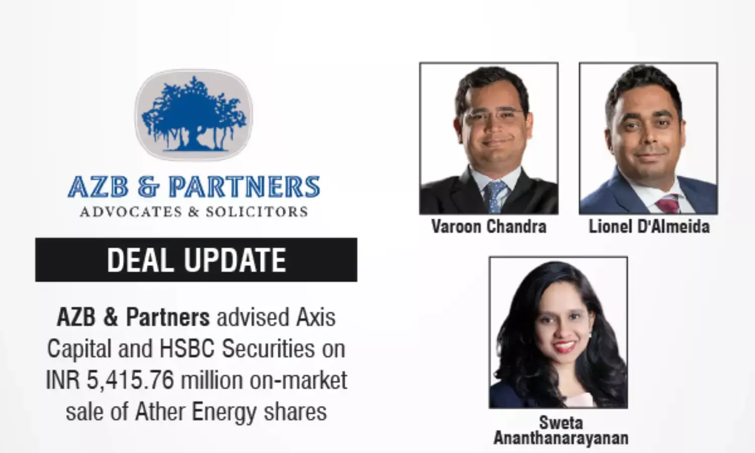 AZB & Partners Advised Axis Capital And HSBC Securities On INR 5,415.76 Million On-Market Sale Of Ather Energy Shares
