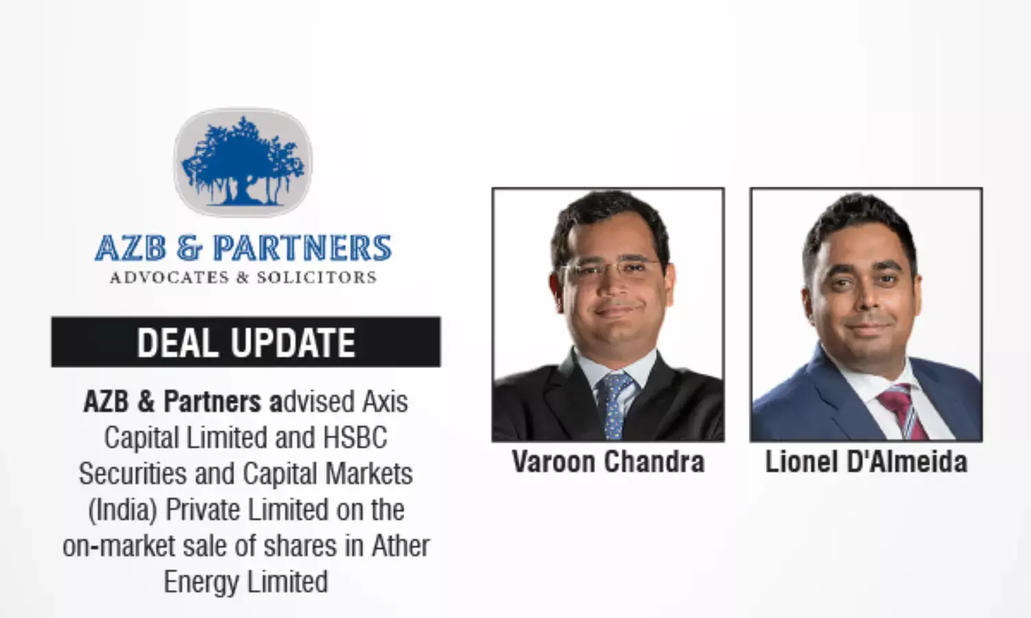 AZB & Partners advised Axis Capital and HSBC on ₹5,335M Ather Energy on-market share sale.