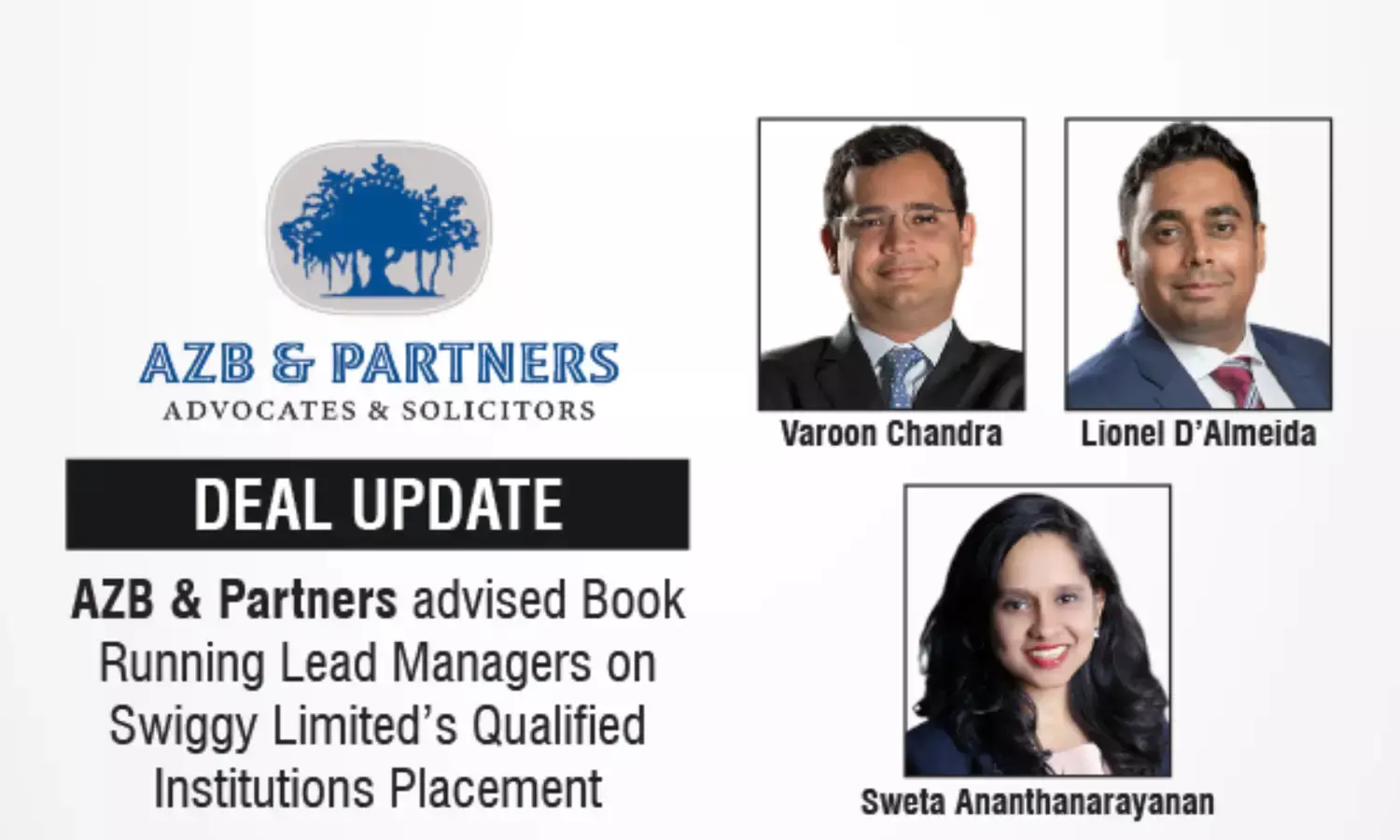 AZB & Partners advised book running lead managers on Swiggy Limited’s ₹10,000 crore QIP, India’s second-largest.