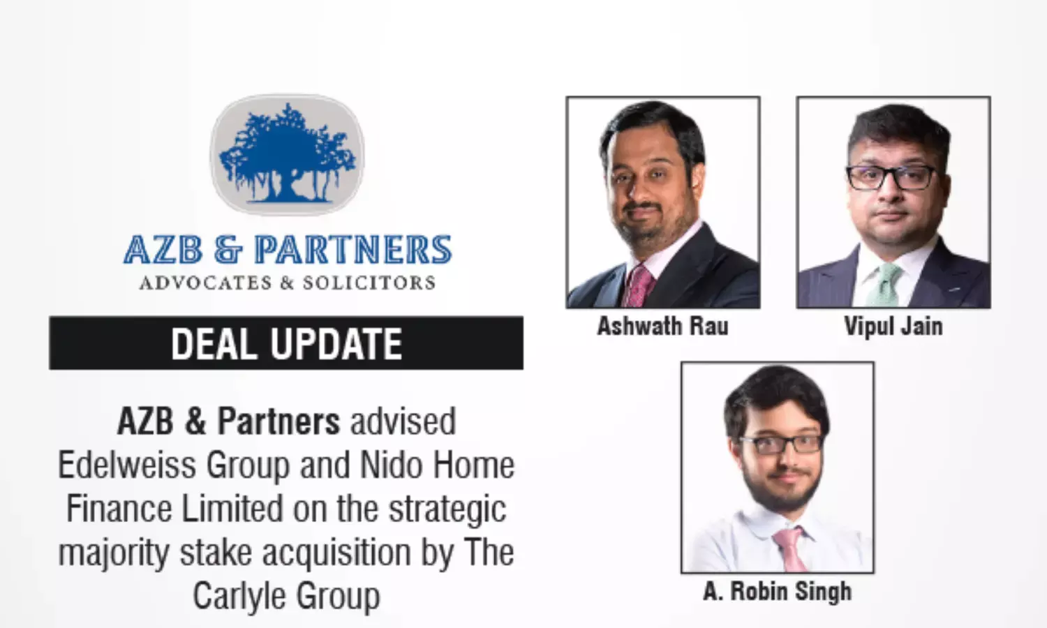 AZB & Partners advised Edelweiss Group and Nido Home Finance Limited on the strategic majority stake acquisition by The Carlyle Group