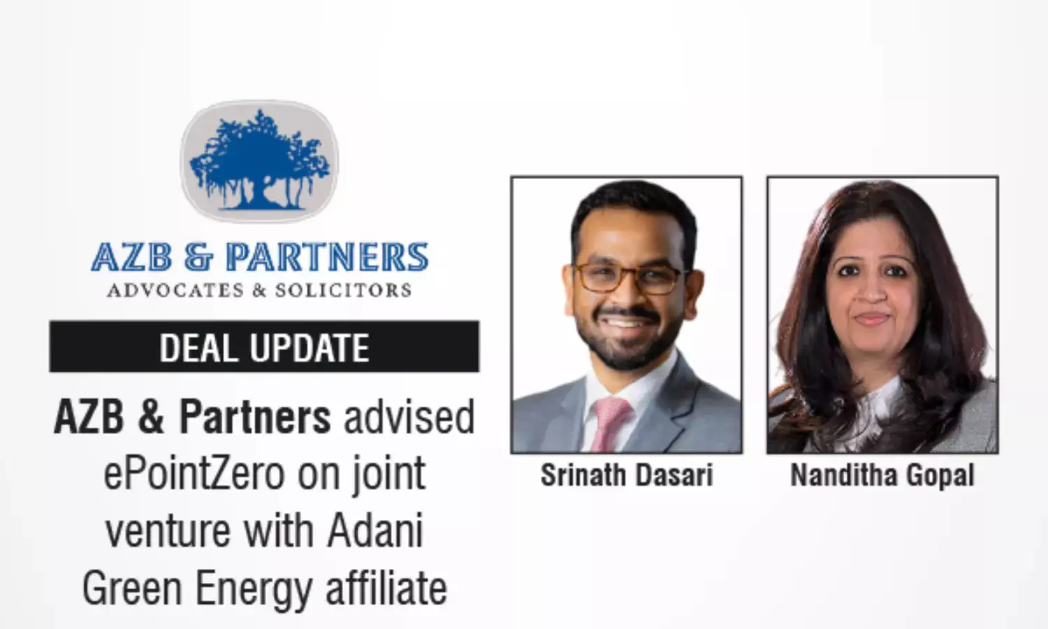 AZB & Partners advised ePointZero on joint venture with Adani Green Energy affiliate