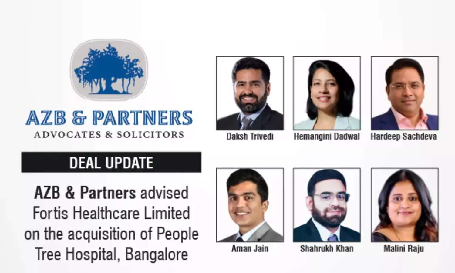 AZB & Partners advised Fortis Healthcare on acquiring People Tree Hospital, Bangalore, including land and operations.