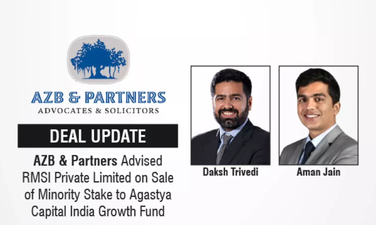The AZB & Partners deal team comprised Daksh Trivedi (Senior Partner), Aman Jain (Partner), and Tvisha Dikshit, Shivam Khanna, Srishti Kaushal, and Ananya Dhawan (Associates).