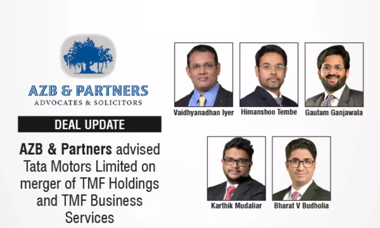 The leading law firm in India, AZB & Partners is advising Tata Motors Limited (TML) in relation to the proposed merger of its direct and indirect subsidiaries – TMF Holdings Limited (TMF) and TMF Business Services Limited – with Tata Motors Limited.