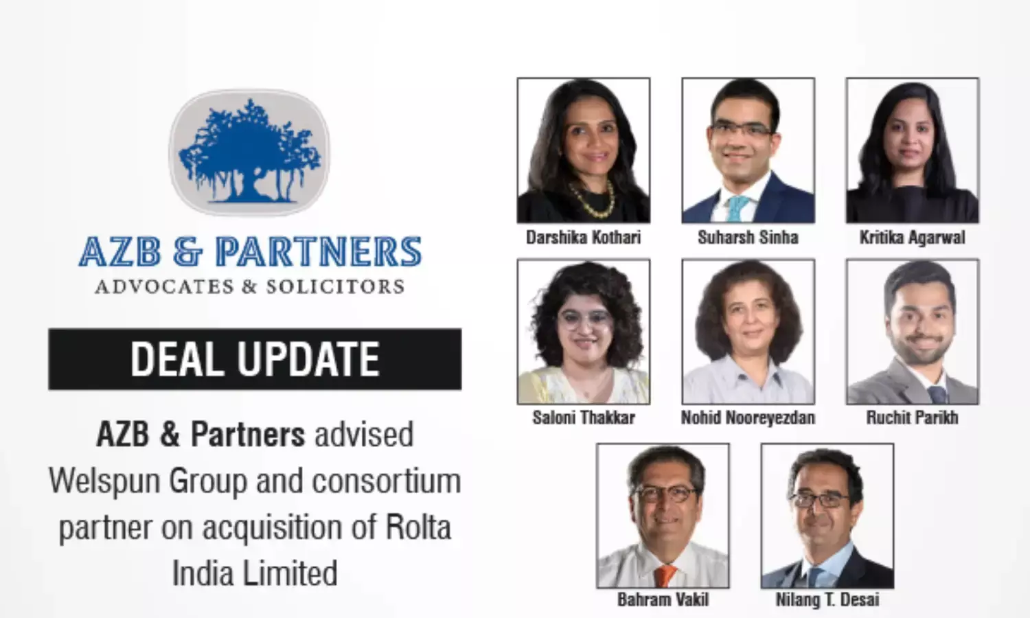 AZB & Partners advised Welspun Group and consortium on Rolta India acquisition under CIRP resolving INR 14,074 cr debt.