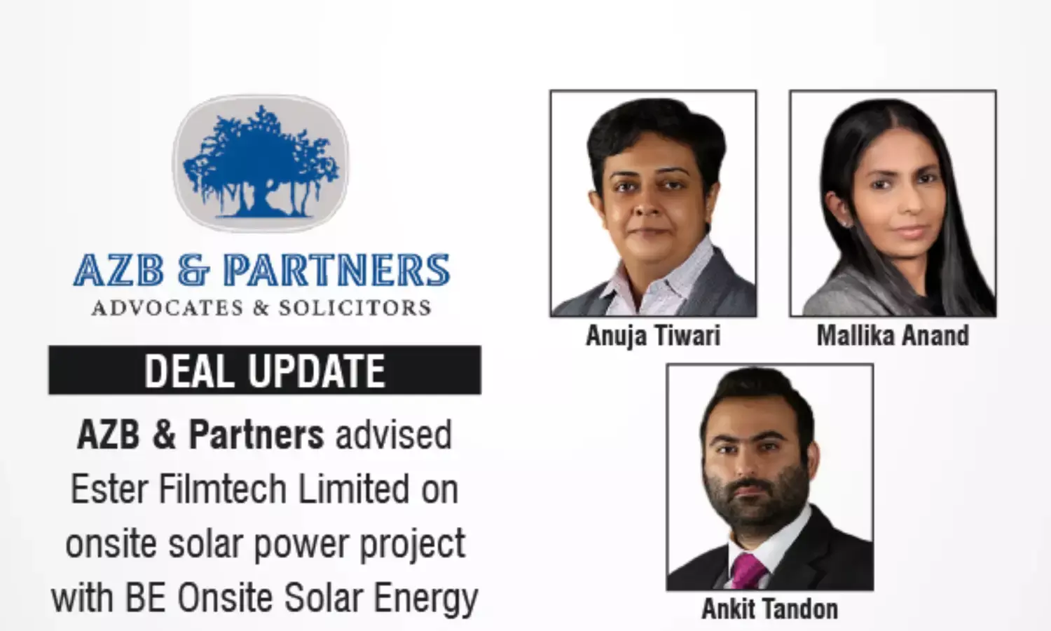 AZB & Partners advised Ester Filmtech Limited on onsite solar power project with BE Onsite Solar Energy