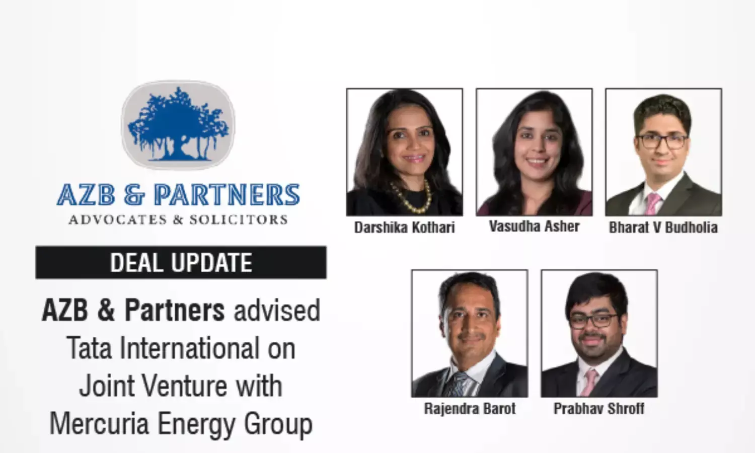 The leading law firm in India, AZB & Partners advised Tata International on a joint venture with Mercuria Energy Group to expand its global trading business across multiple commodities, including energy, metals, agricultural products, oil, and gas. The establishment of the JV is subject to receipt of customary regulatory approvals.