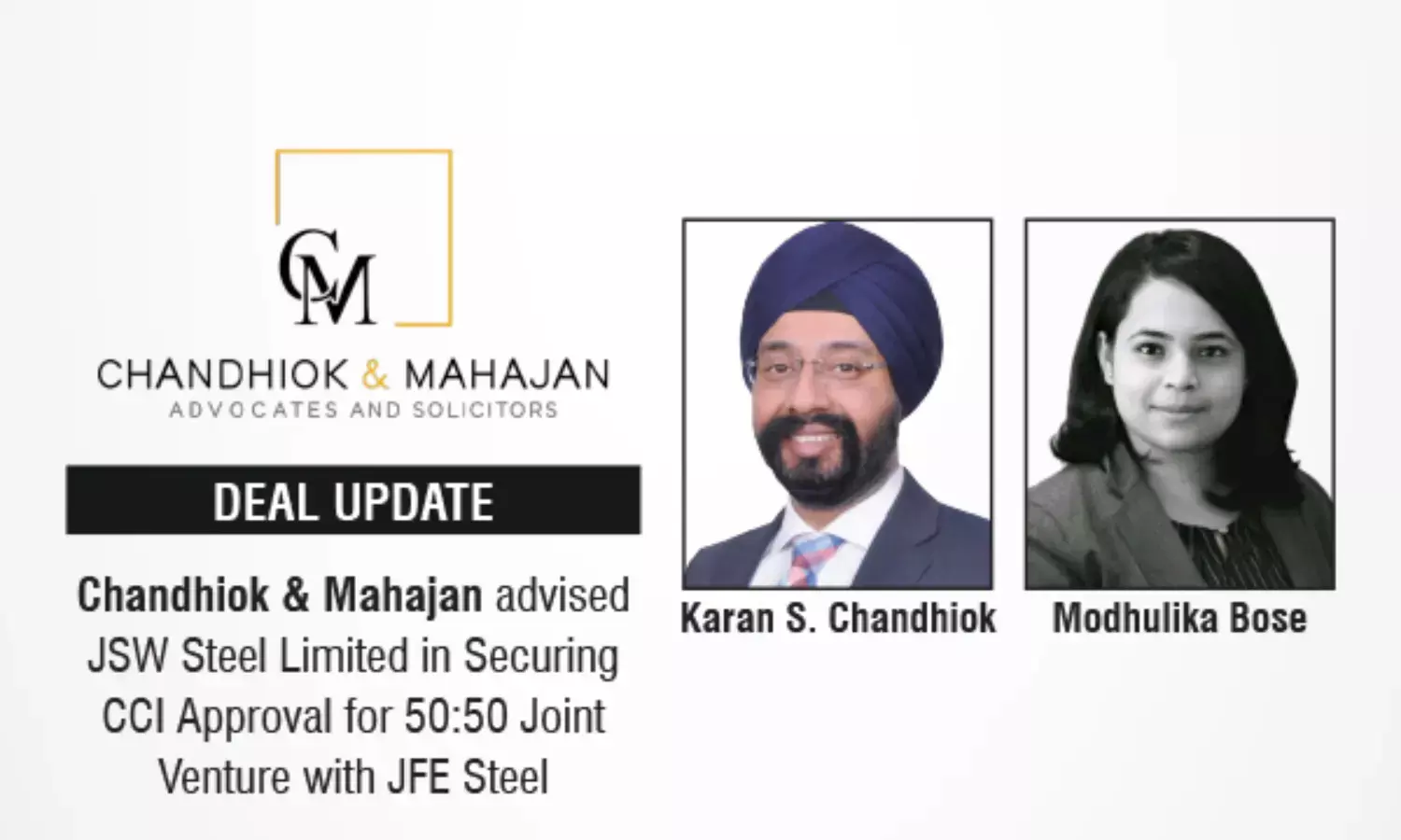 Chandhiok & Mahajan advised JSW Steel on CCI approval for 50:50 joint venture with JFE Steel.