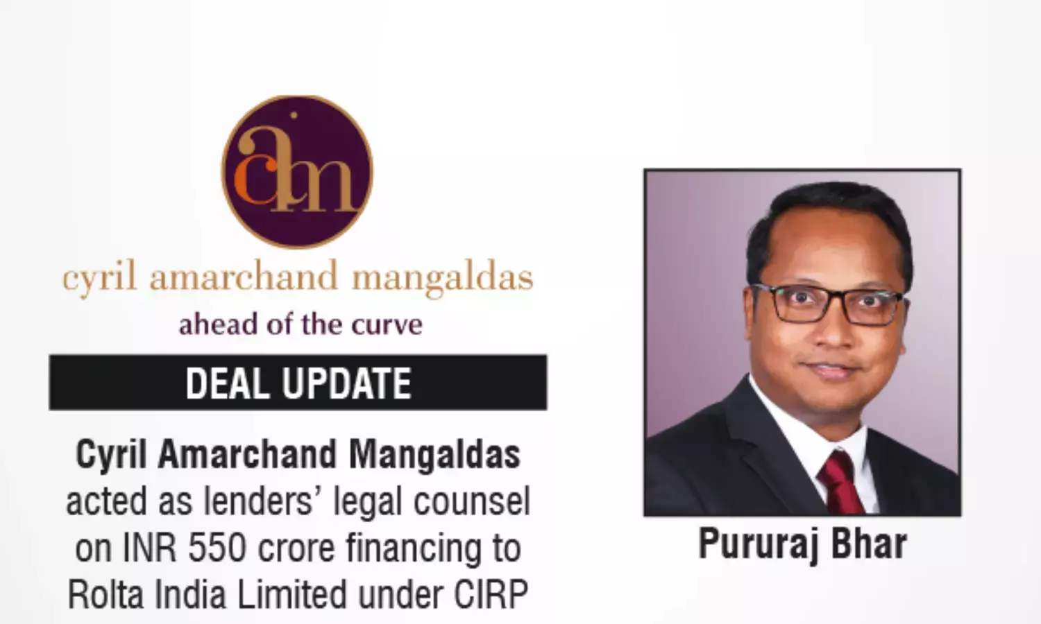The CAM transaction was led by Pururaj Bhar (Partner), with support from Sohrab Kharadi (Principal Associate), Ayush Chowdhury (Senior Associate), and Kriti Jain (Associate).