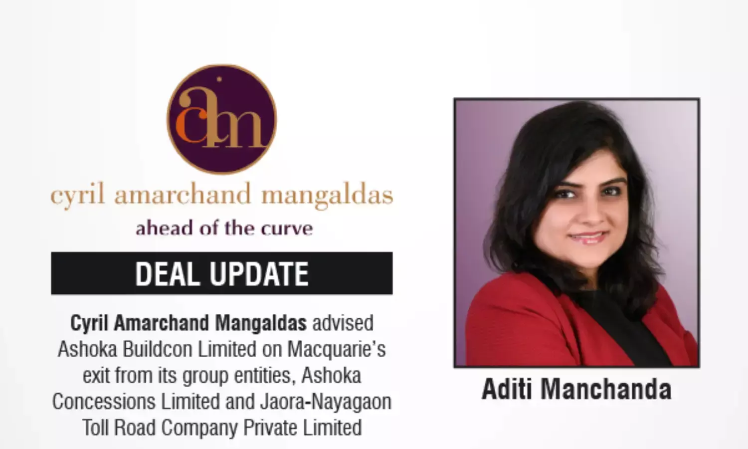 Cyril Amarchand Mangaldas advised Ashoka Buildcon Limited on Macquarie’s exit from its group entities, Ashoka Concessions Limited and Jaora-Nayagaon Toll Road Company Private Limited