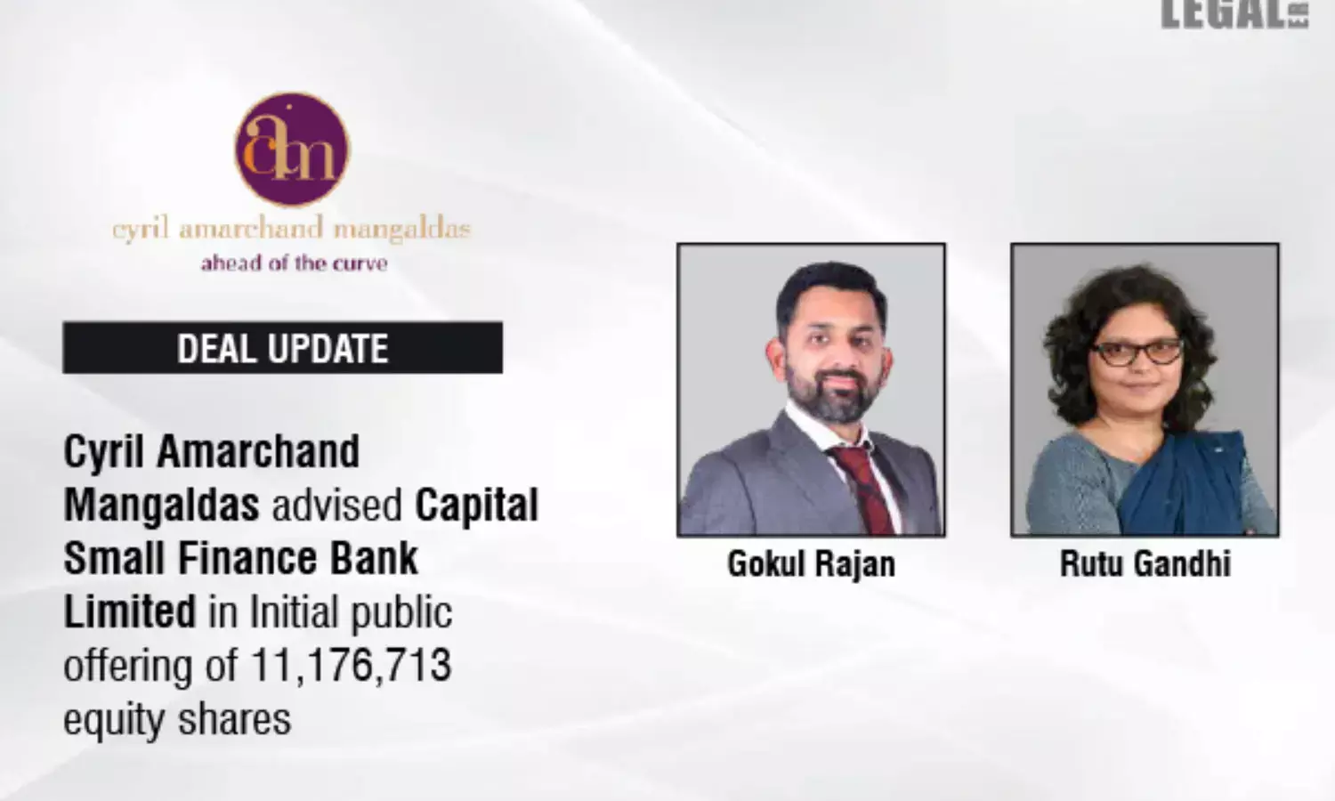 Cyril Amarchand Mangaldas (CAM) has advised Capital Small Finance Bank Limited (Bank) on its recent successful initial