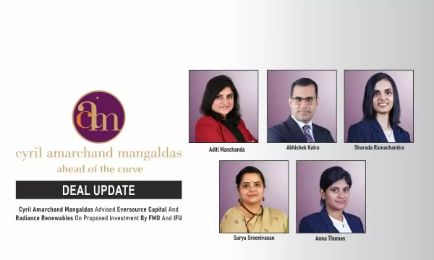 Cyril Amarchand Mangaldas Advised Eversource Capital And Radiance Renewables On Proposed Investment By FMO And IFU