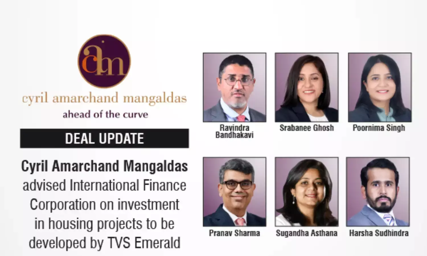 The leading law firm in India, Cyril Amarchand Mangaldas advised International Finance Corporation (IFC) on its investment in housing projects to be developed and constructed by TVS Emerald Limited through its subsidiaries.