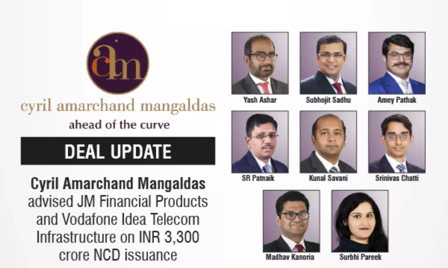 Cyril Amarchand Mangaldas advised JM Financial Products and Vodafone Idea on INR 3,300 crore NCD issuance.