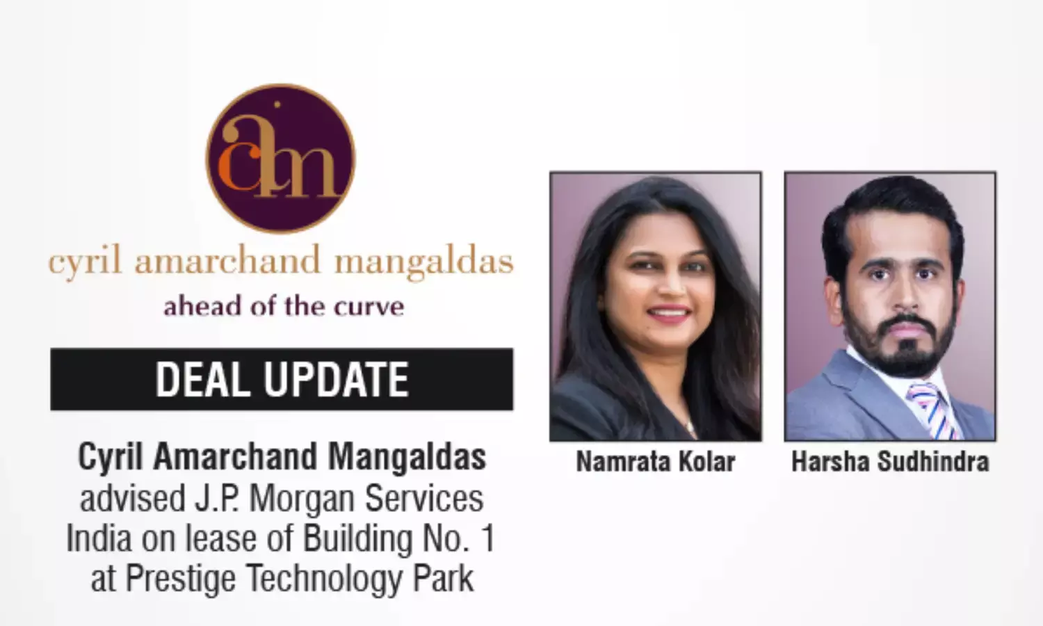 Cyril Amarchand Mangaldas advises J.P. Morgan Services India on lease of Building No. 1 at Prestige Technology Park.