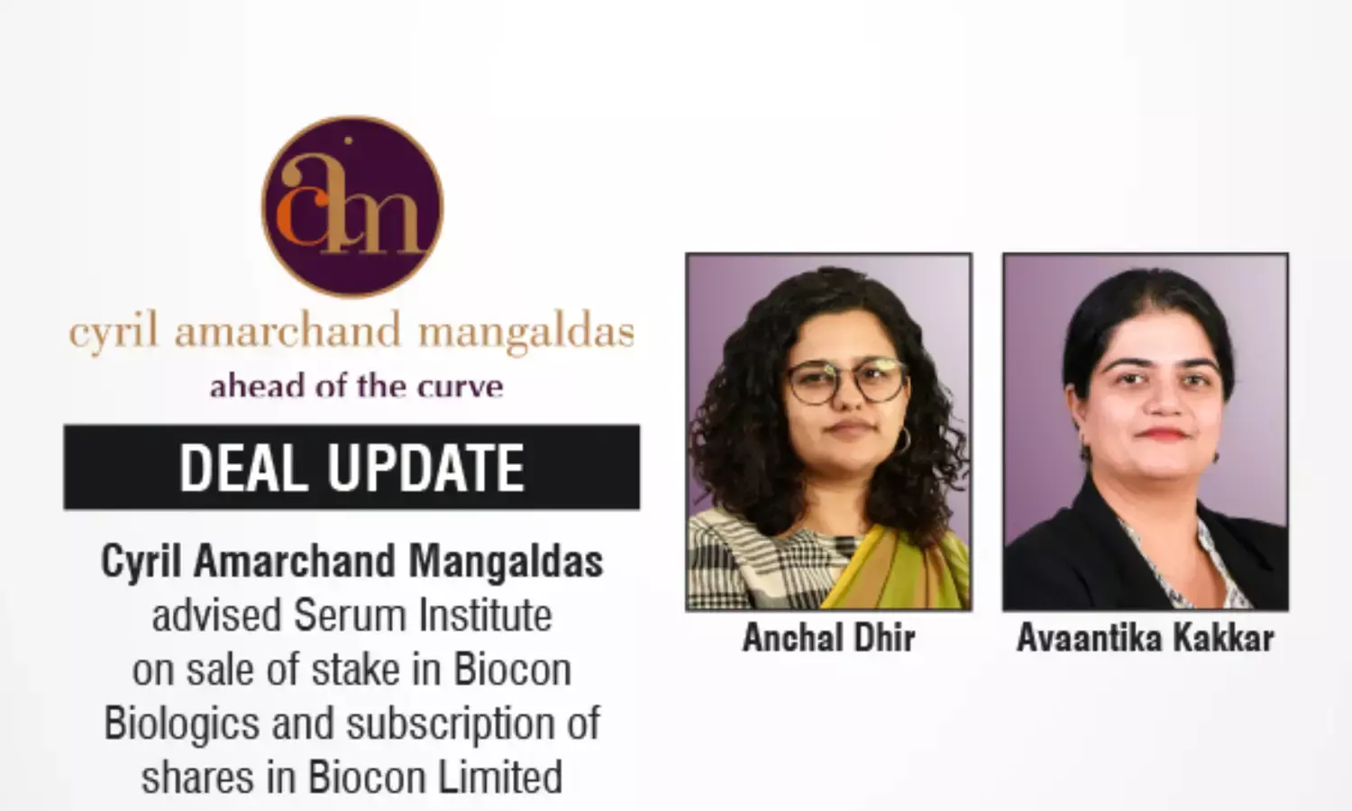 Cyril Amarchand Mangaldas advised Serum Institute on stake sale in Biocon Biologics and share subscription in Biocon.