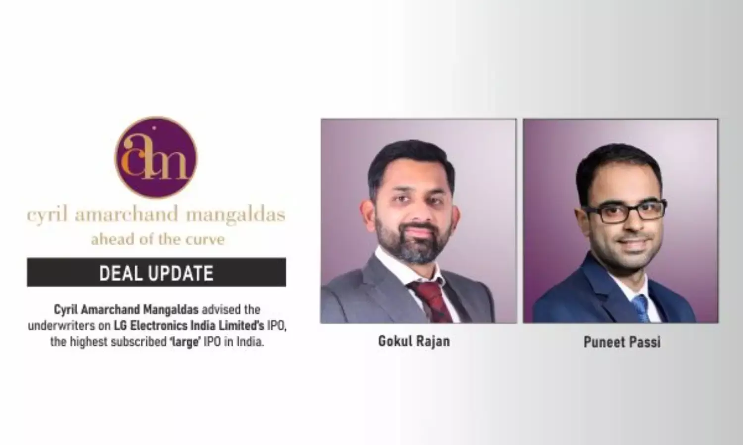 Cyril Amarchand Mangaldas advised the underwriters on LG Electronics India Limited’s IPO, the highest subscribed ‘large’ IPO in India.