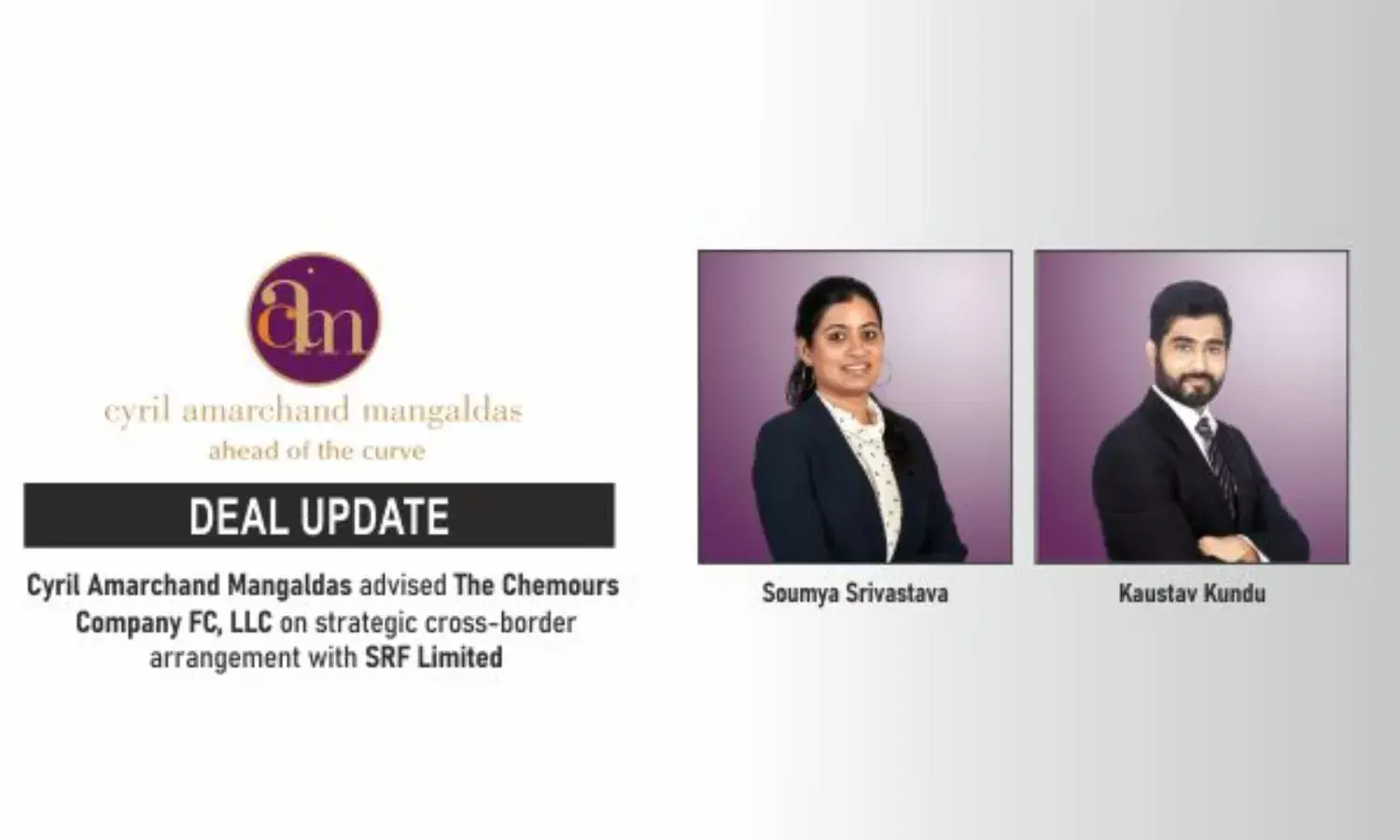 The Leading law firm, Cyril Amarchand Mangaldas advised as legal counsel to The Chemours Company FC, LLC (NYSE: CC), a global chemistry company with leading market positions in Thermal & Specialized Solutions (TSS), Titanium Technologies (TT), and Advanced Performance Materials (APM), in structuring and executing a complex cross-border arrangement with SRF Limited, one of India’s diversified, chemical-based multi-business conglomerates.