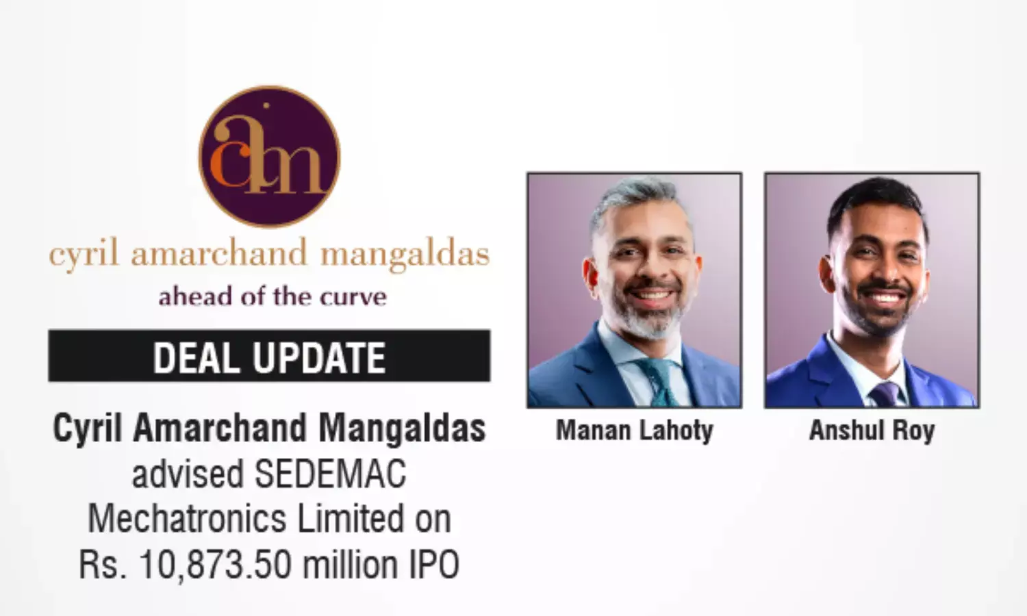 The Cyril Amarchand Mangaldas team was led by Manan Lahoty (Partner, Head – Capital Markets) and Anshul Roy (Partner), with support from Rishav Buxi (Principal Associate), Anuj Gupta, Niharika Payannavar, Hitesh Nagpal, Aditya Maheshwari, and Chinmay Jumde (Associates).