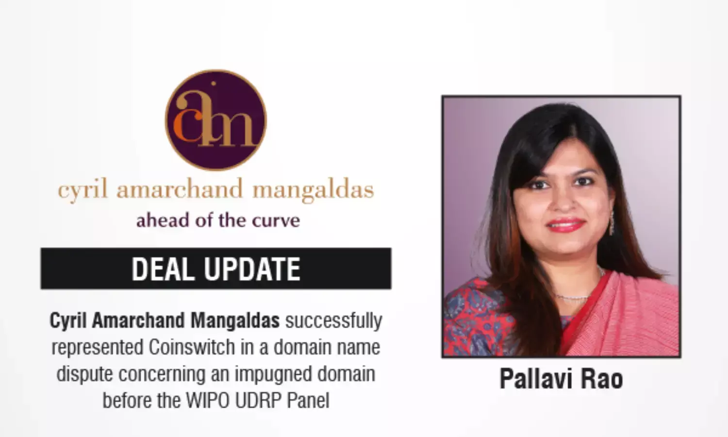 Cyril Amarchand Mangaldas secured domain transfer for Coinswitch in WIPO UDRP dispute.