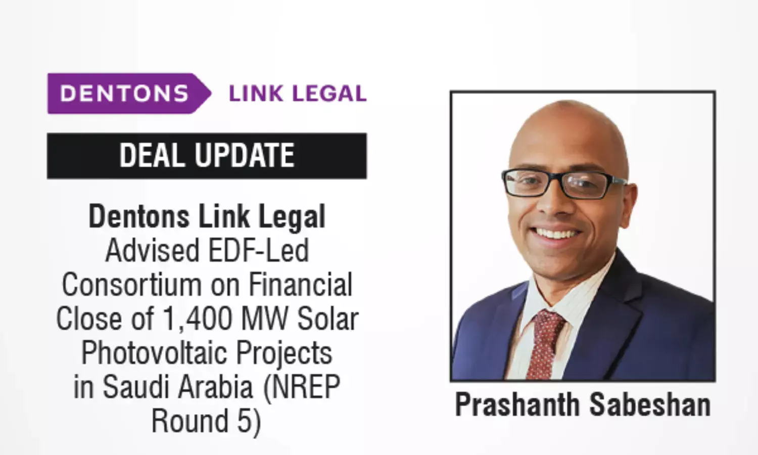 Dentons Link Legal Advised EDF-Led Consortium On Financial Close Of 1,400 MW Solar Photovoltaic Projects In Saudi Arabia (NREP Round 5)