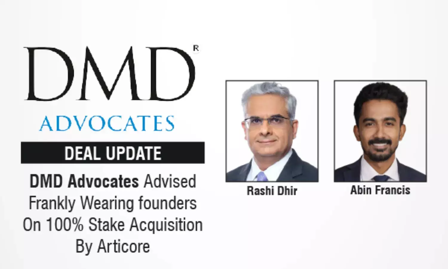 DMD Advocates Advised Frankly Wearing founders On 100% Stake Acquisition By Articore