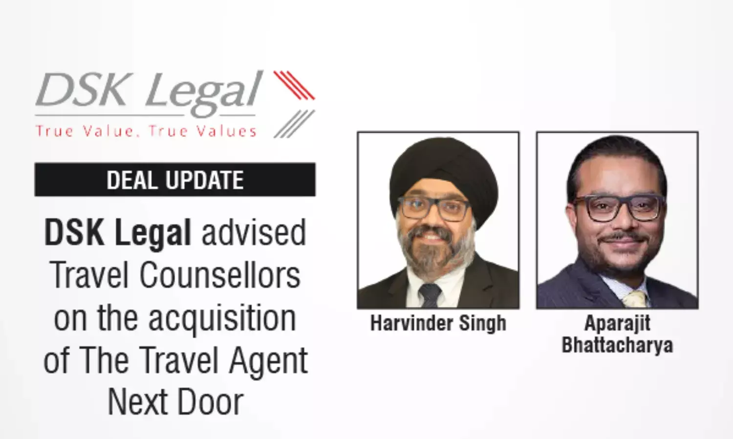 The DSK Legal team representing Travel Counsellors comprised Harvinder Singh (Partner), Manhar Gulani (Principal Associate), Devika Rana (Senior Associate), Brijesh Ranjan Sahoo (Associate), and Sumedha Tewari (Associate). Aparajit Bhattacharya (Partner) acted as the relationship partner and provided strategic inputs on the transaction.