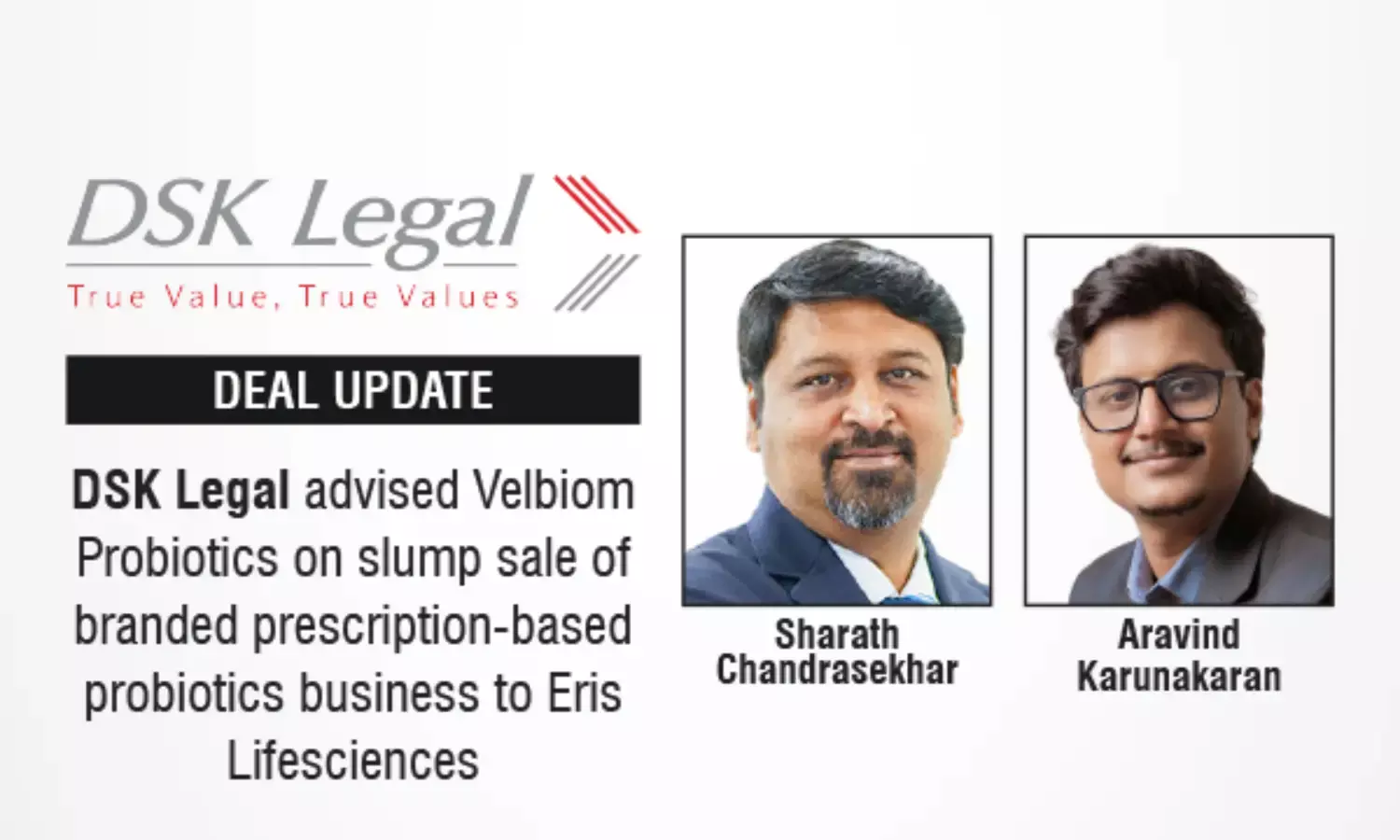 DSK Legal advised Velbiom on INR 50 crore slump sale of probiotics business to Eris Lifesciences