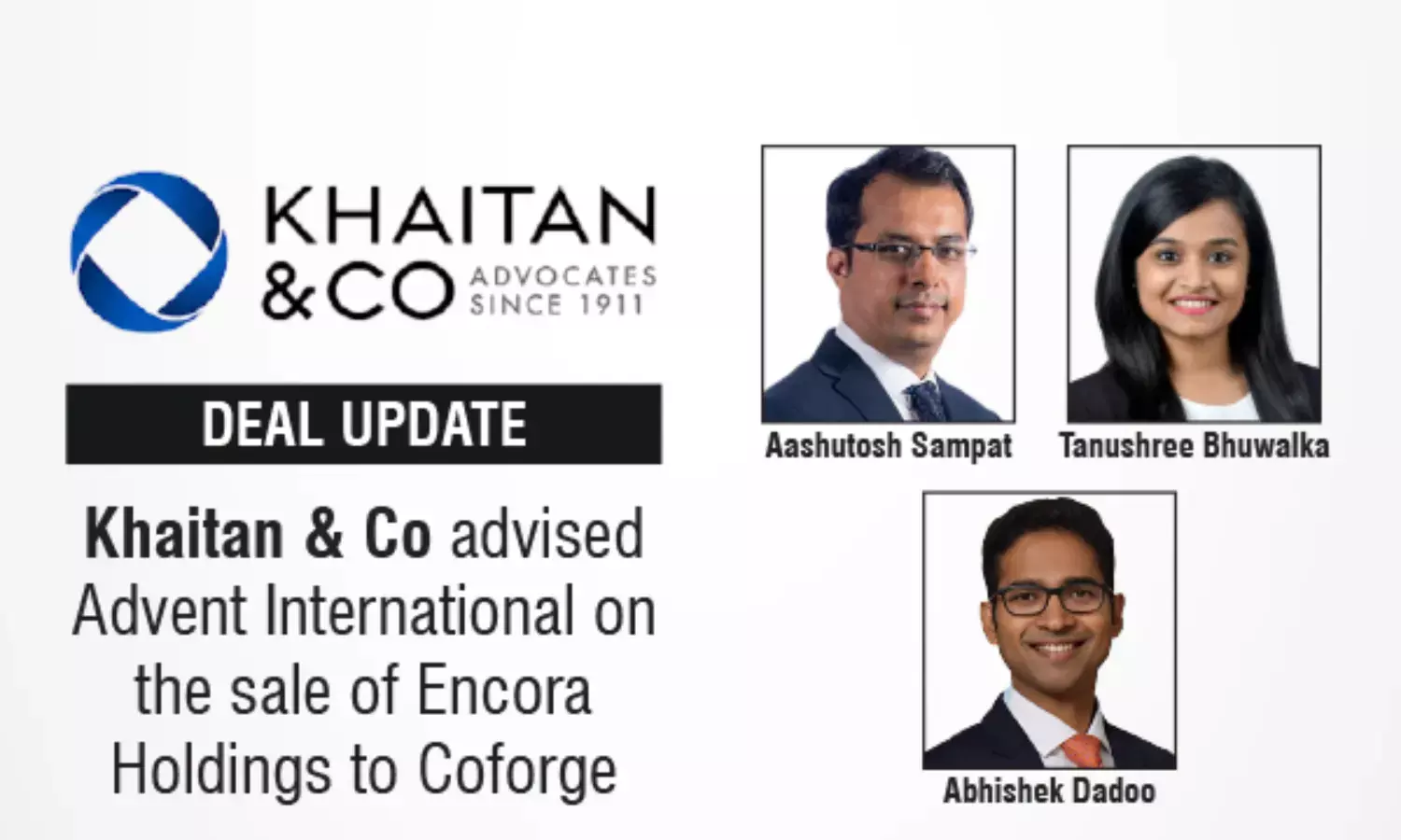 Khaitan & Co advised Advent International on the USD 2.35 billion sale of Encora Holdings to Coforge.