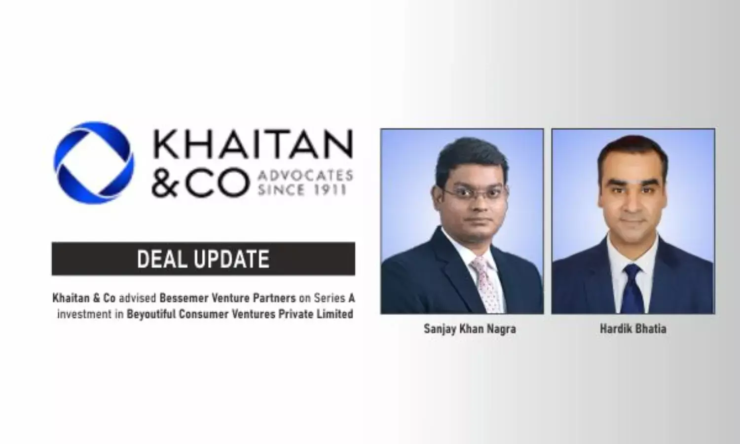 Khaitan & Co advised Bessemer Venture Partners on US$15M Series A investment in Beyoutiful Consumer Ventures.
