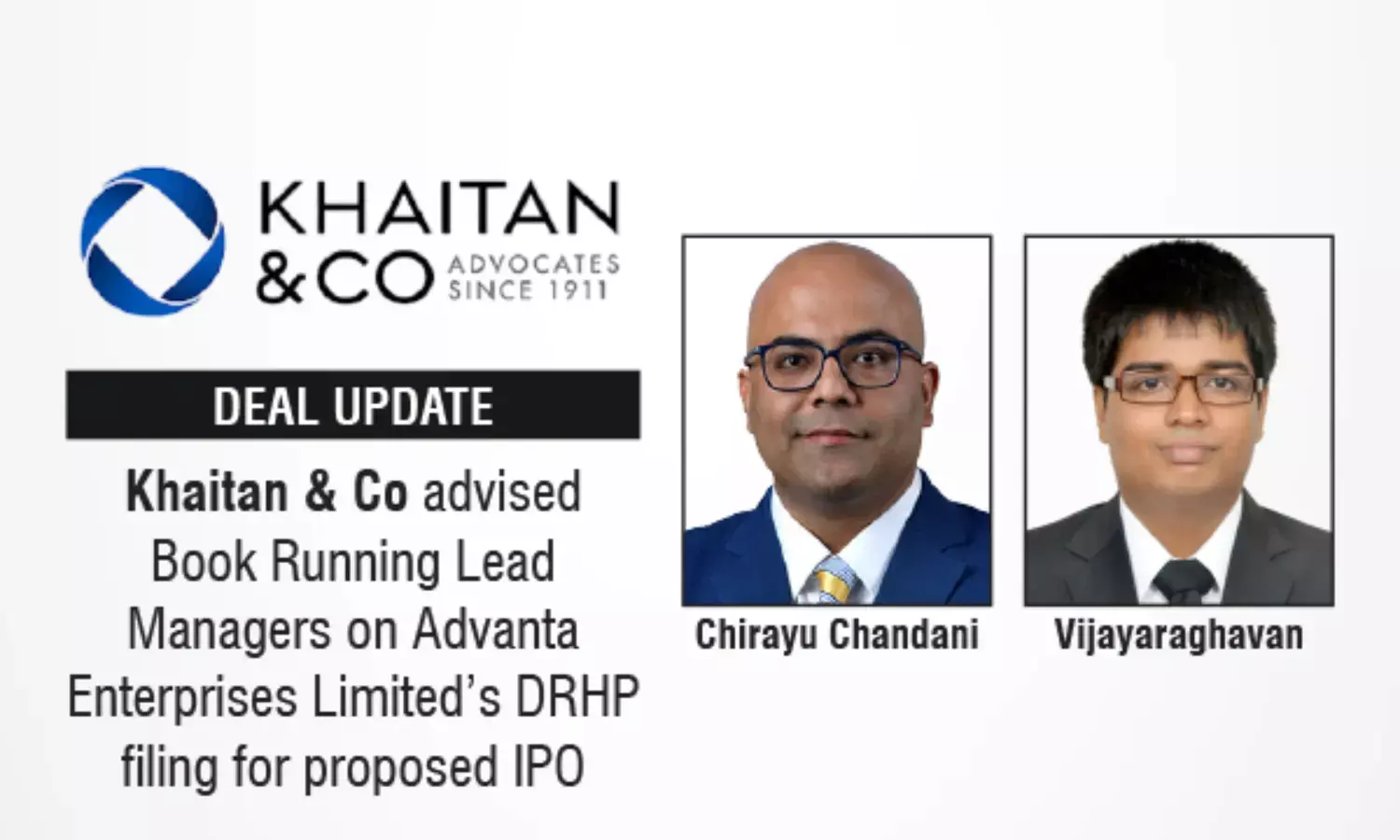Khaitan & Co advised Book Running Lead Managers on Advanta Enterprises’ DRHP filing for proposed IPO.