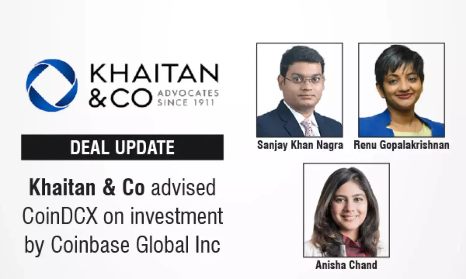 Khaitan & Co advises CoinDCX on proposed investment by Coinbase Global Inc, subject to regulatory approvals.