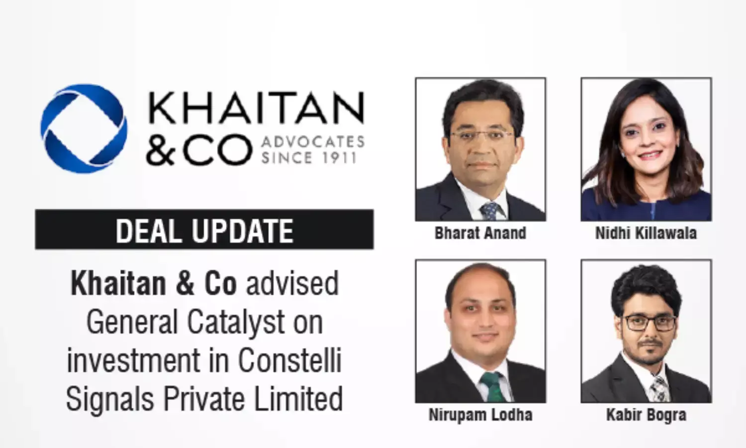 Khaitan & Co advised General Catalyst on ~USD 14 million lead investment in Constelli Signals Private Limited.