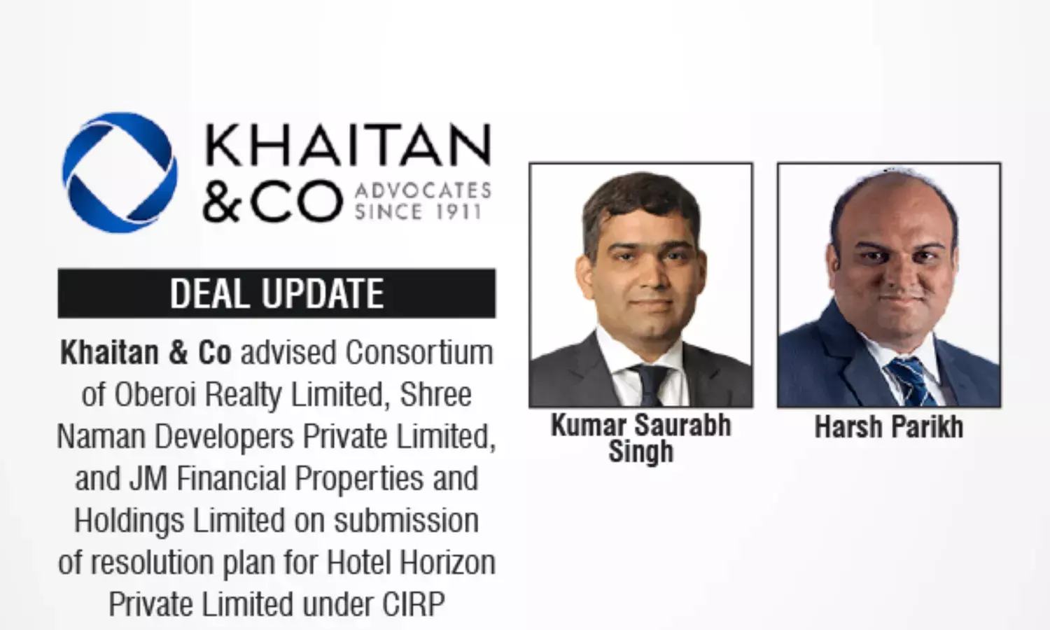 Khaitan & Co advised consortium on Hotel Horizon resolution plan under CIRP, addressing INR 1,300 crore liabilities.