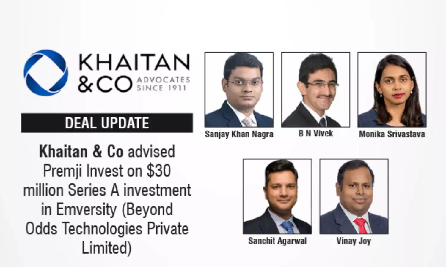 The leading law firm in India, Khaitan & Co acted as legal counsel to Premji Invest in connection with leading the $30 million Series A funding round in Emversity (Beyond Odds Technologies Private Limited), a higher-education embedded training and employability platform.