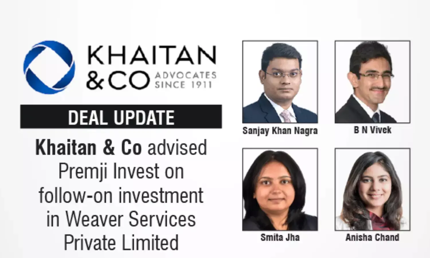 Khaitan & Co advised Premji Invest on follow-on investment in Weaver Services Private Limited