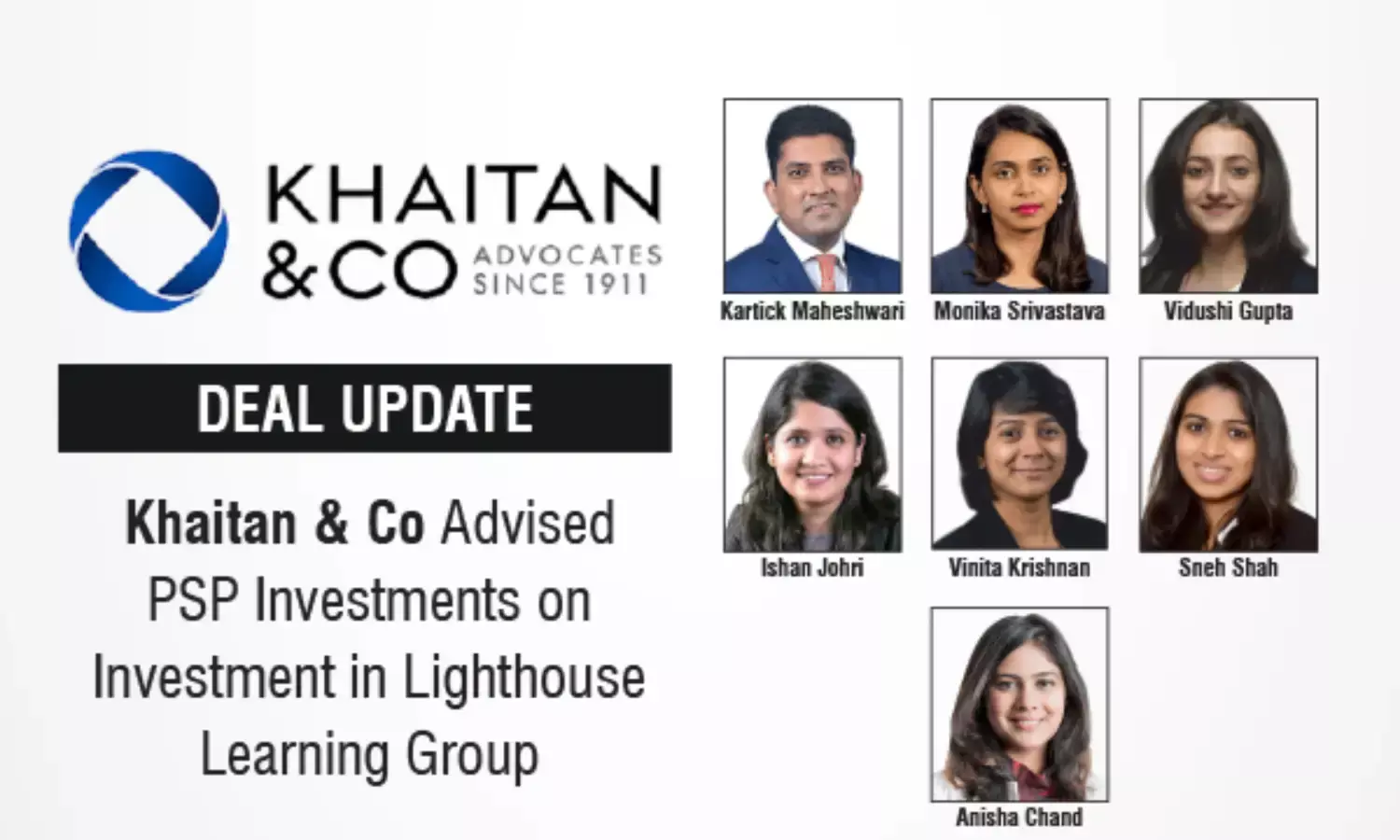 Khaitan & Co advised PSP Investments on its investment in KKR-backed Lighthouse Learning Group in India.