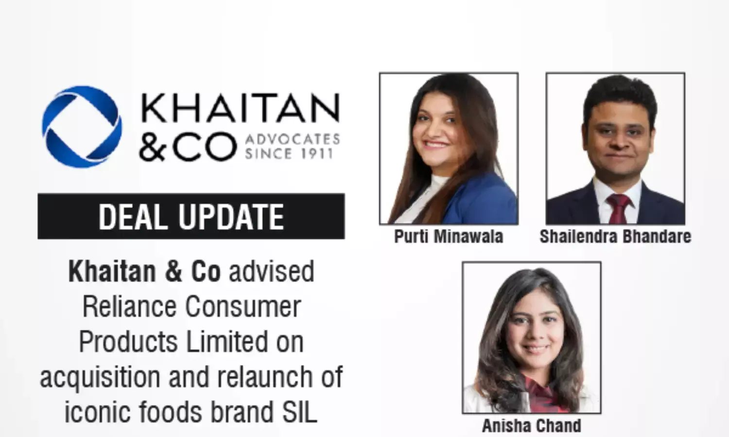 The leading law firm in India, Khaitan & Co, advised Reliance Consumer Products Limited (RCPL), the FMCG arm of Reliance Industries Limited, on the acquisition of the 75-year-old legacy foods brand SIL from Sil Food India Private Limited, and the subsequent relaunch of the brand.