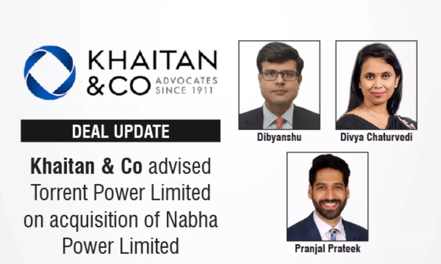 Khaitan & Co advised Torrent Power on INR 6,889 crore acquisition of Nabha Power Limited in Punjab.