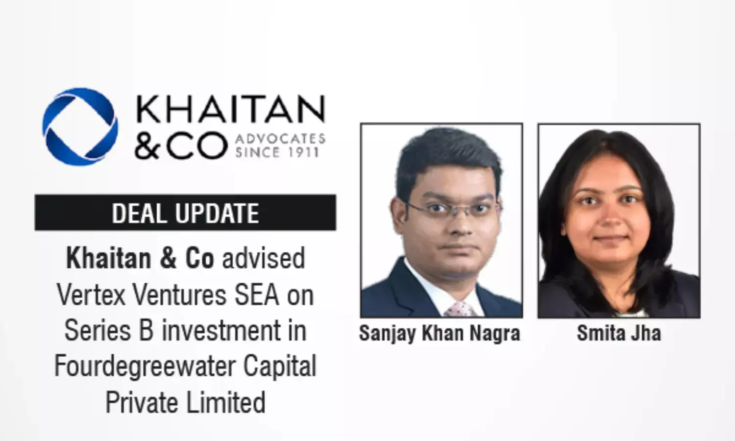 Khaitan & Co Advised Vertex Ventures SEA On Series B Investment In Fourdegreewater Capital Private Limited