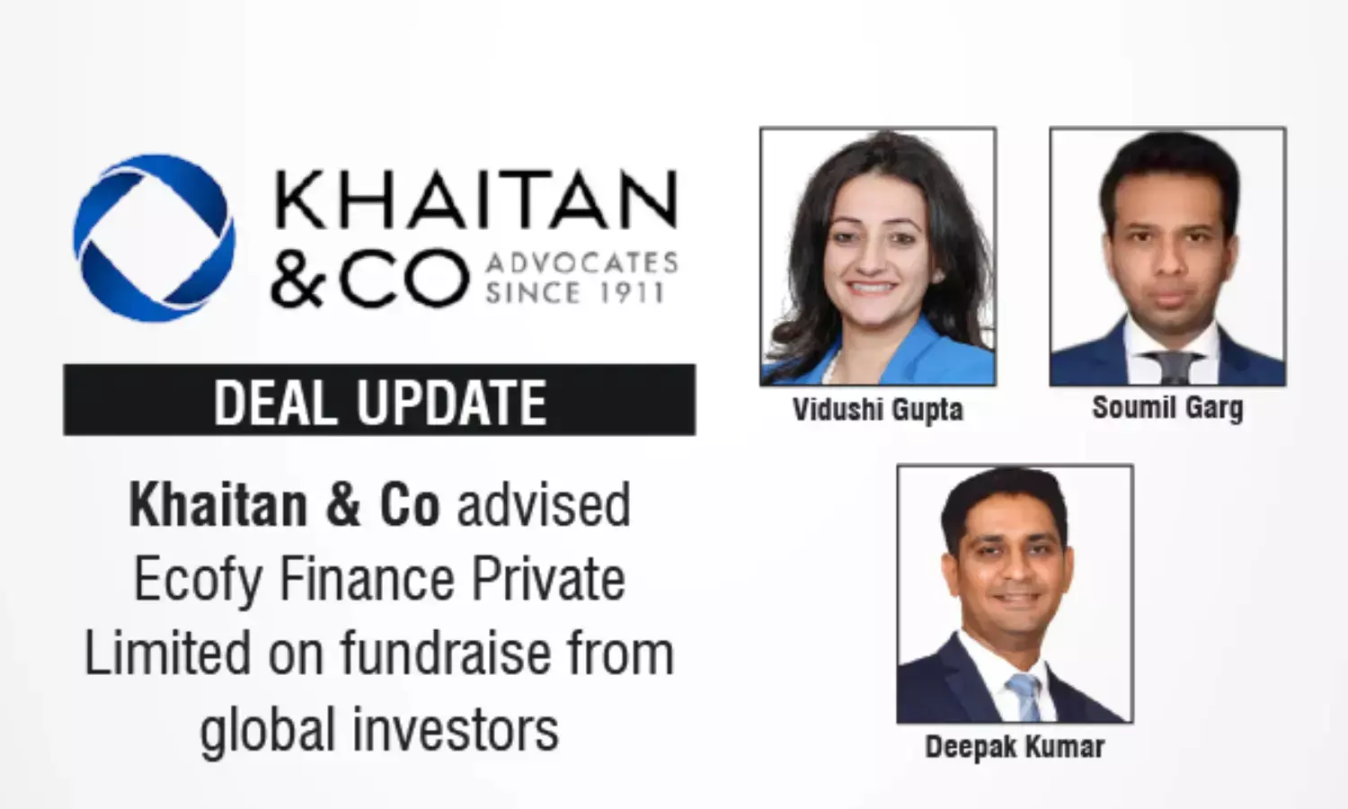 Khaitan & Co Advised Ecofy Finance Private Limited On Fundraise From Global Investors