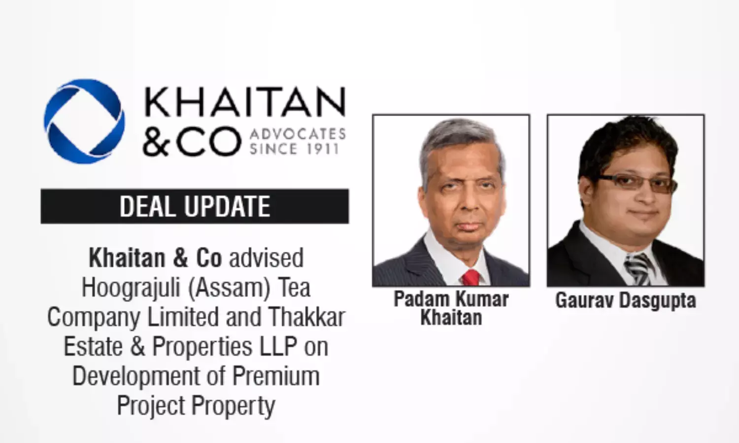 Khaitan & Co advised Hoograjuli (Assam) Tea Company Limited and Thakkar Estate & Properties LLP on Development of Premium Project Property