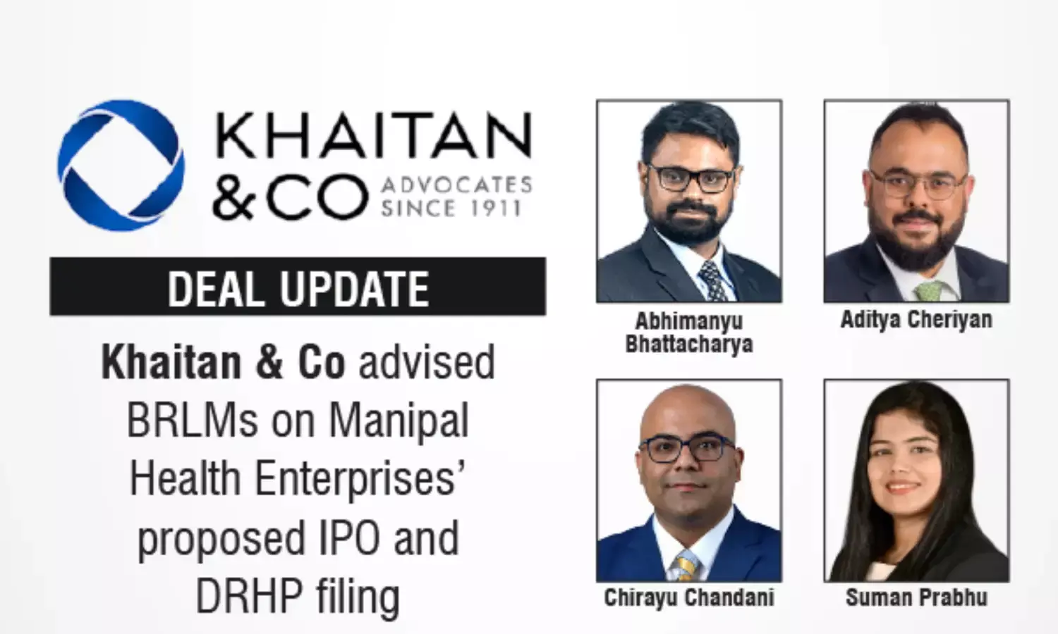 Khaitan & Co advised BRLMs on Manipal Health’s INR 8000 crore IPO and DRHP filing in India.