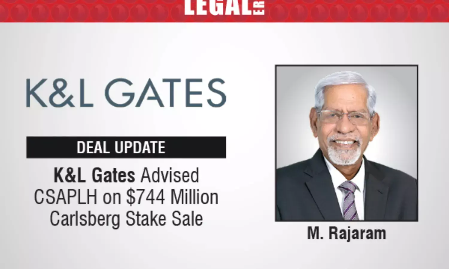 Global law firm K&L Gates has advised CSAPL (Singapore) Holding Pte Ltd (CSAPLH) on the sale of its 33.33% stake in Carlsberg South Asia Pte Ltd (CSAPL) to Carlsberg Breweries A/S.