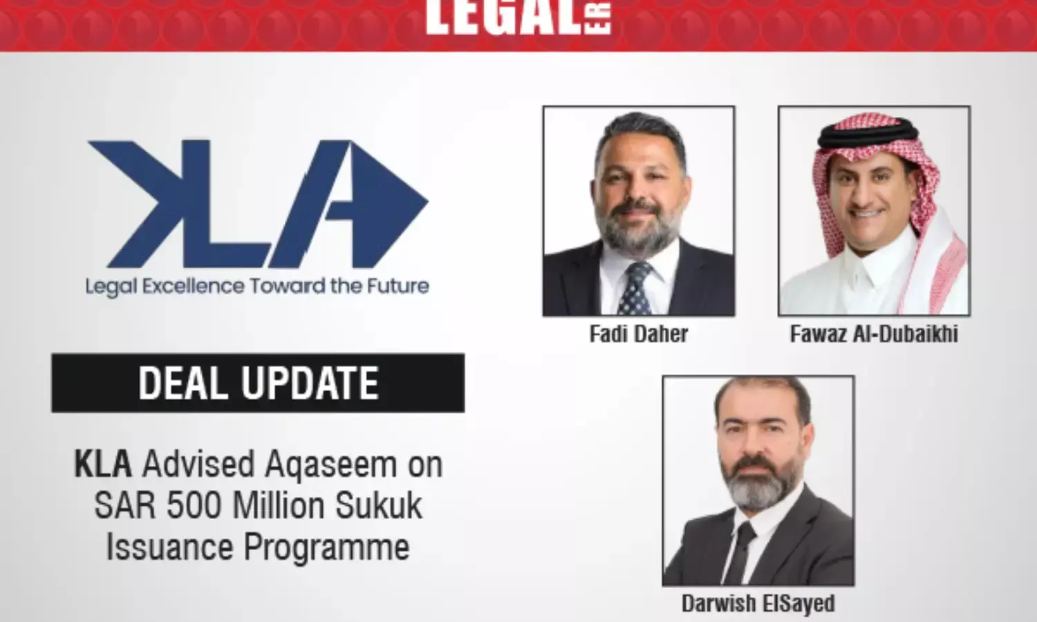 The KLA team was led by Co-Managing Partner and Head of Corporate & Securities, Fadi Daher, with additional support from Partner Darwish ElSayed, Senior Associate Sarah Lahoud, Associates Hussain Bu Najimah and Nihal Safi, and Trainee Associate Turki Alateeq.